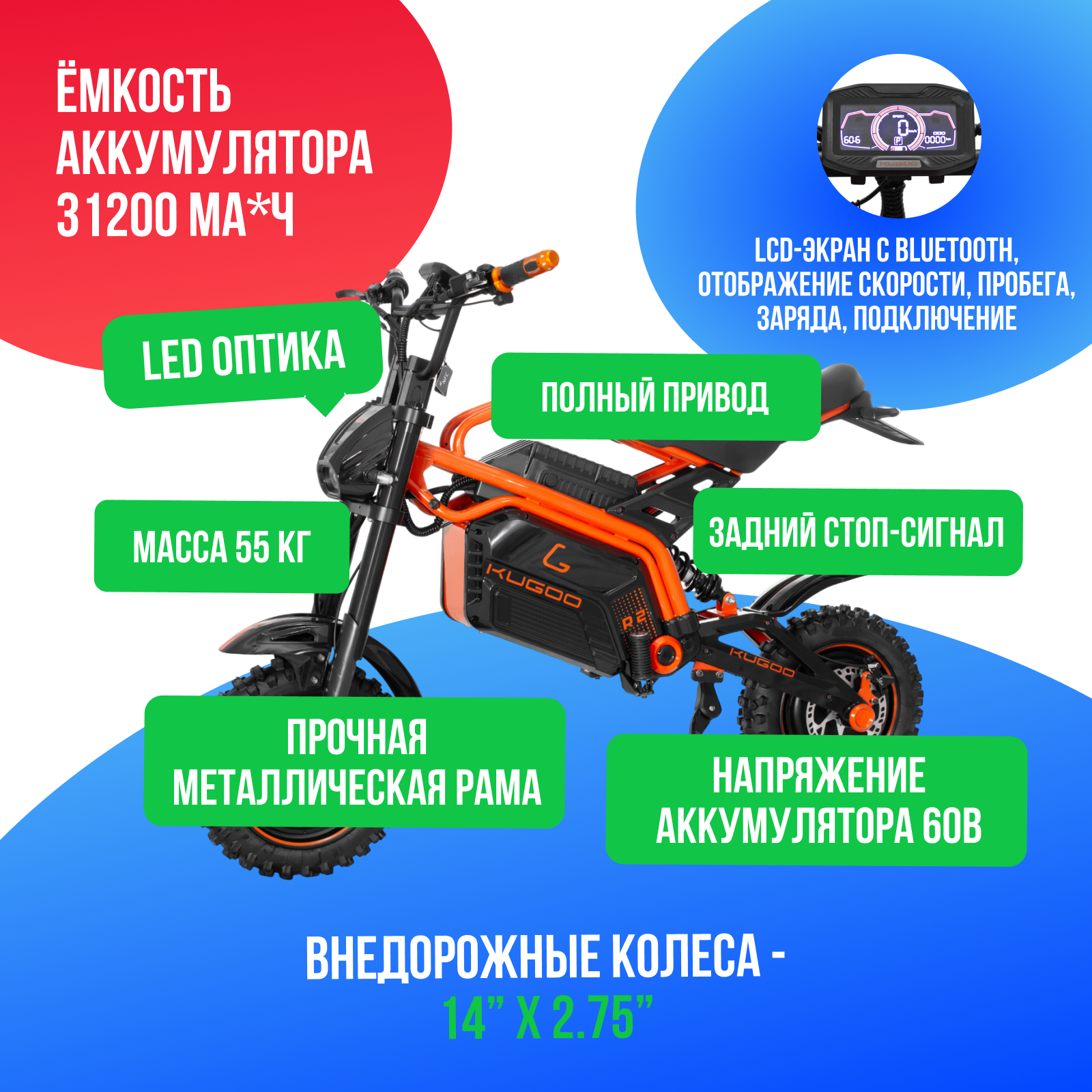 Купить Электромопед KUGOO R2 (60V/31.2Ah) 3600W с доставкой по Москве и всей России
