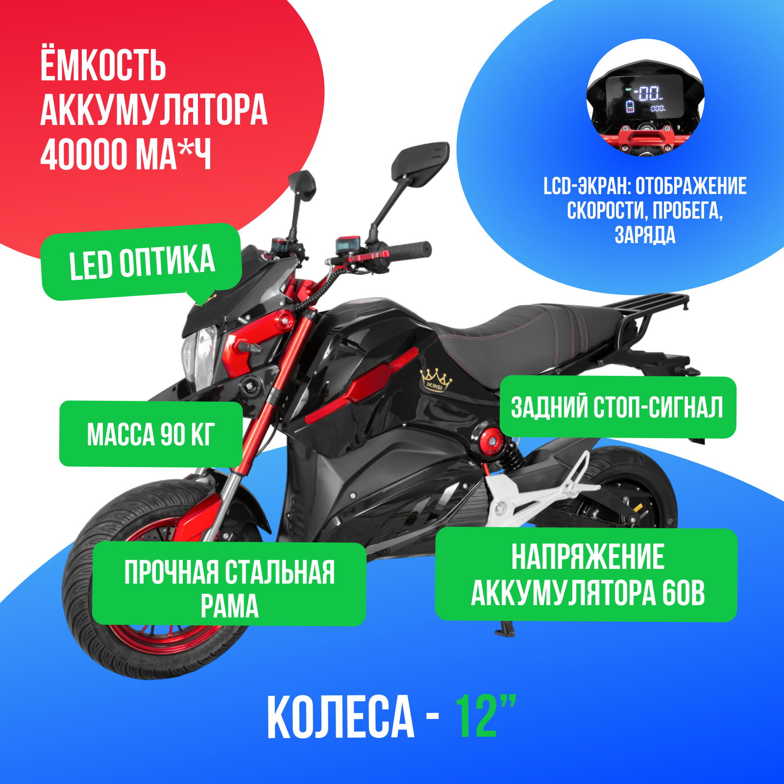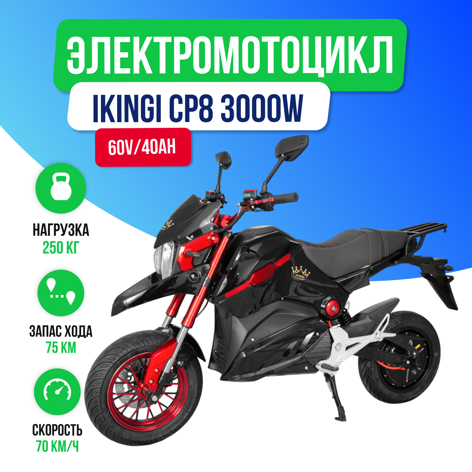 Купить Электромотоцикл IKINGI CP8 3000W (60V/40Ah) с доставкой по Москве и всей России