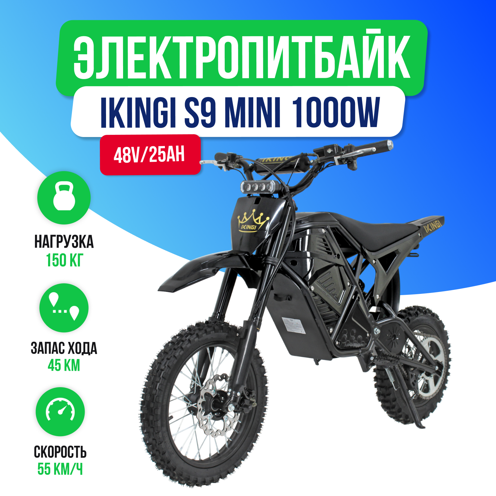 Купить Электропитбайк IKINGI S9 MINI (48V/25Ah) с доставкой по Москве и всей России