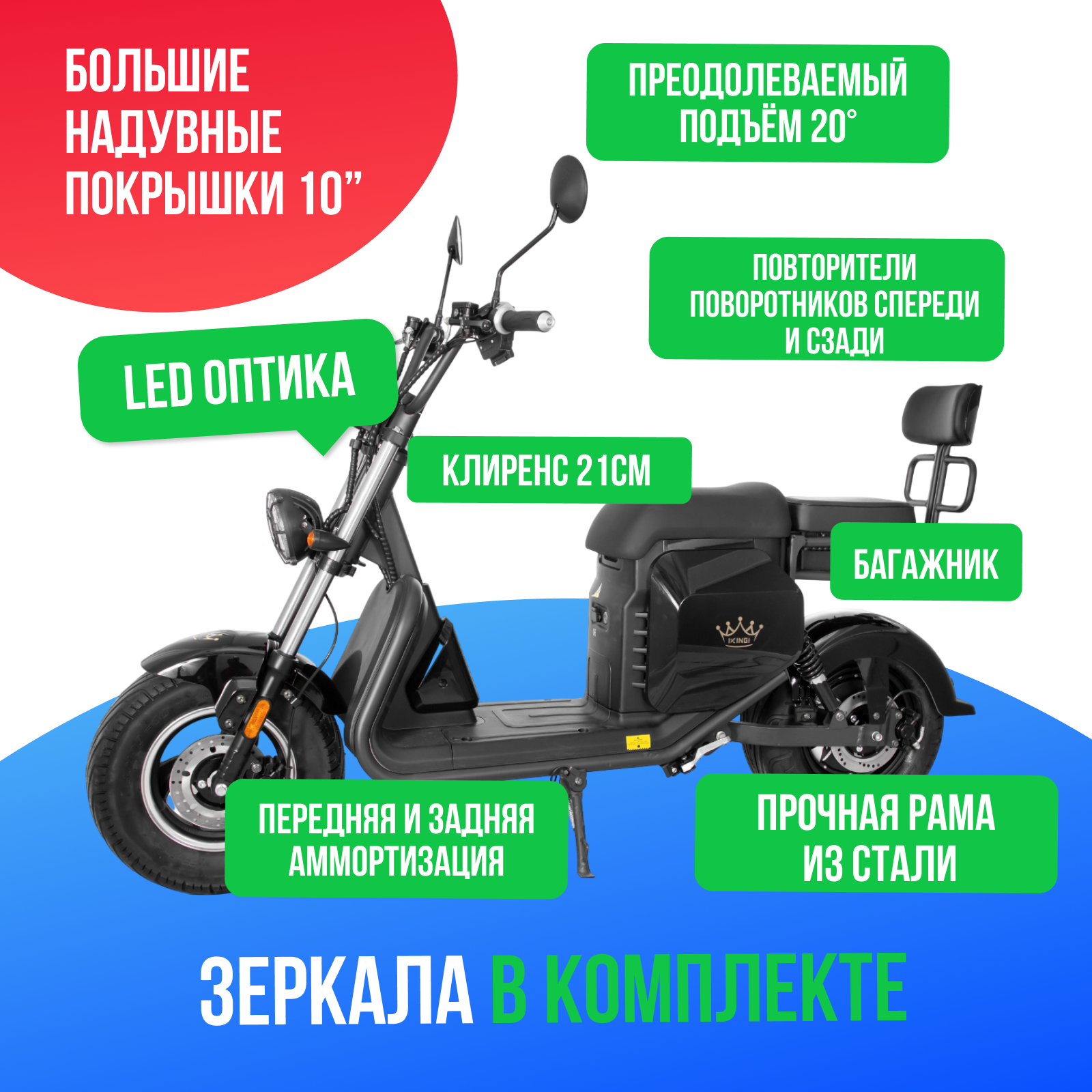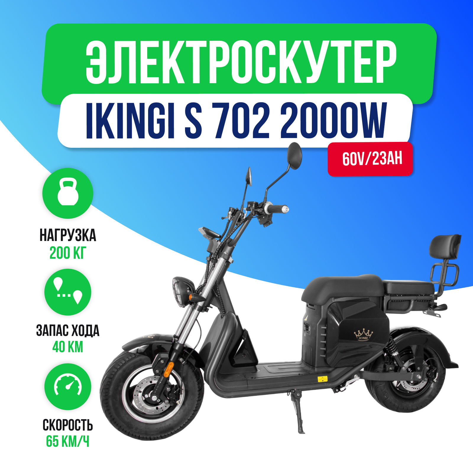 Купить Электроскутер IKINGI S 702 - 2000W (60V/23AH) с доставкой по Москве и всей России