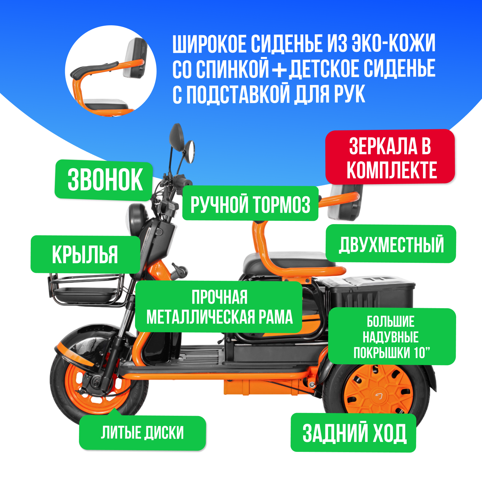 Мощность двигателя составляет 500 W, что позволяет развивать скорость до 35 км/ч. Емкость аккумулятора 20800 мА*ч дает возможность проехать 50 км без подзарядки. Время полной зарядки — 8 ч ч. Масса электросамоката — 100 кг, а максимально допустимая нагрузка — 150 кг. Диаметр колес 10 дюймов обеспечивает хорошую проходимость.