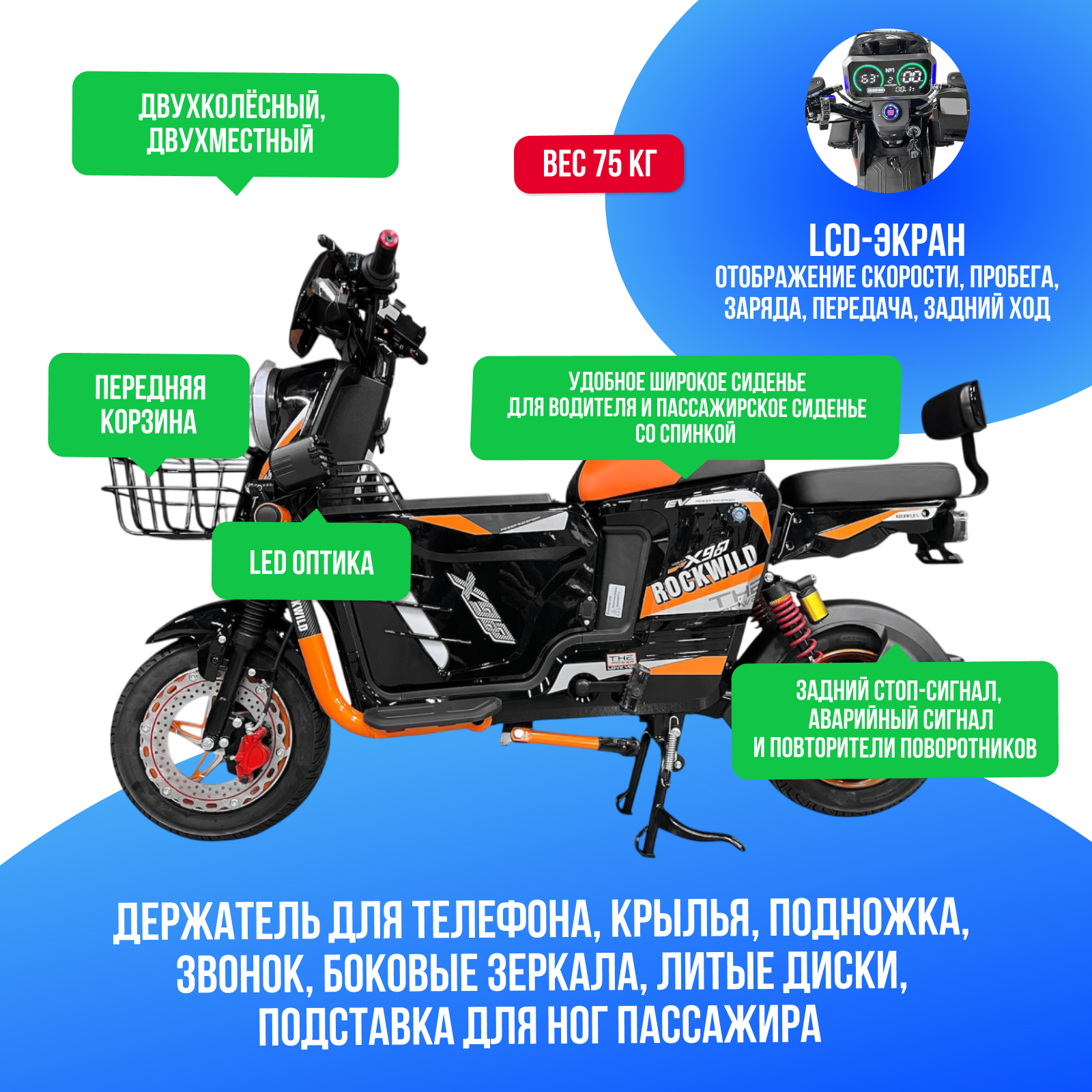 Купить Электроскутер ROCKWILD X900 1600W (60V/40Ah) - Черный с доставкой по Москве и всей России