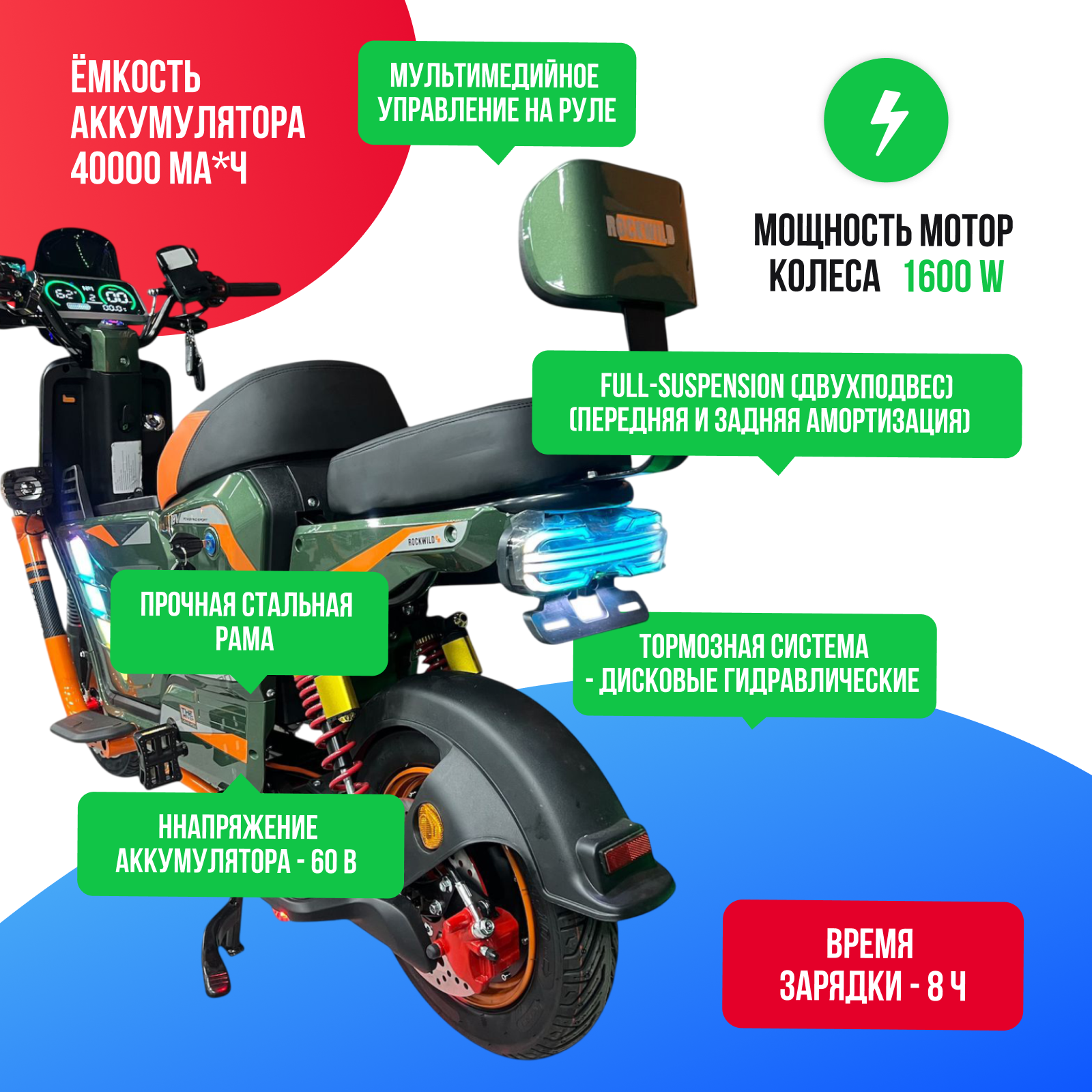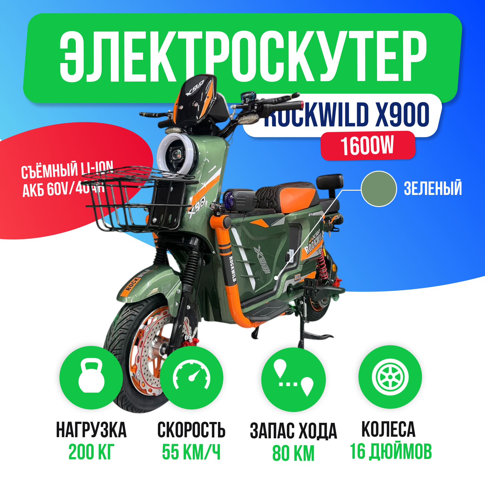 Купить Электроскутер ROCKWILD X900 1600W (60V/40Ah) - Зеленый с доставкой по Москве и всей России
