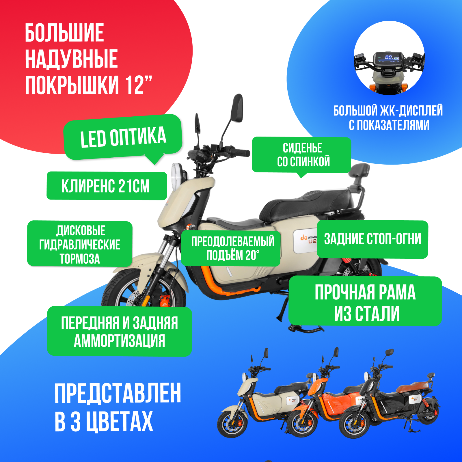 Почему стоит купить Электроскутер WENBOX U2 PRO 1500W (60V/30Ah) - Бежевый