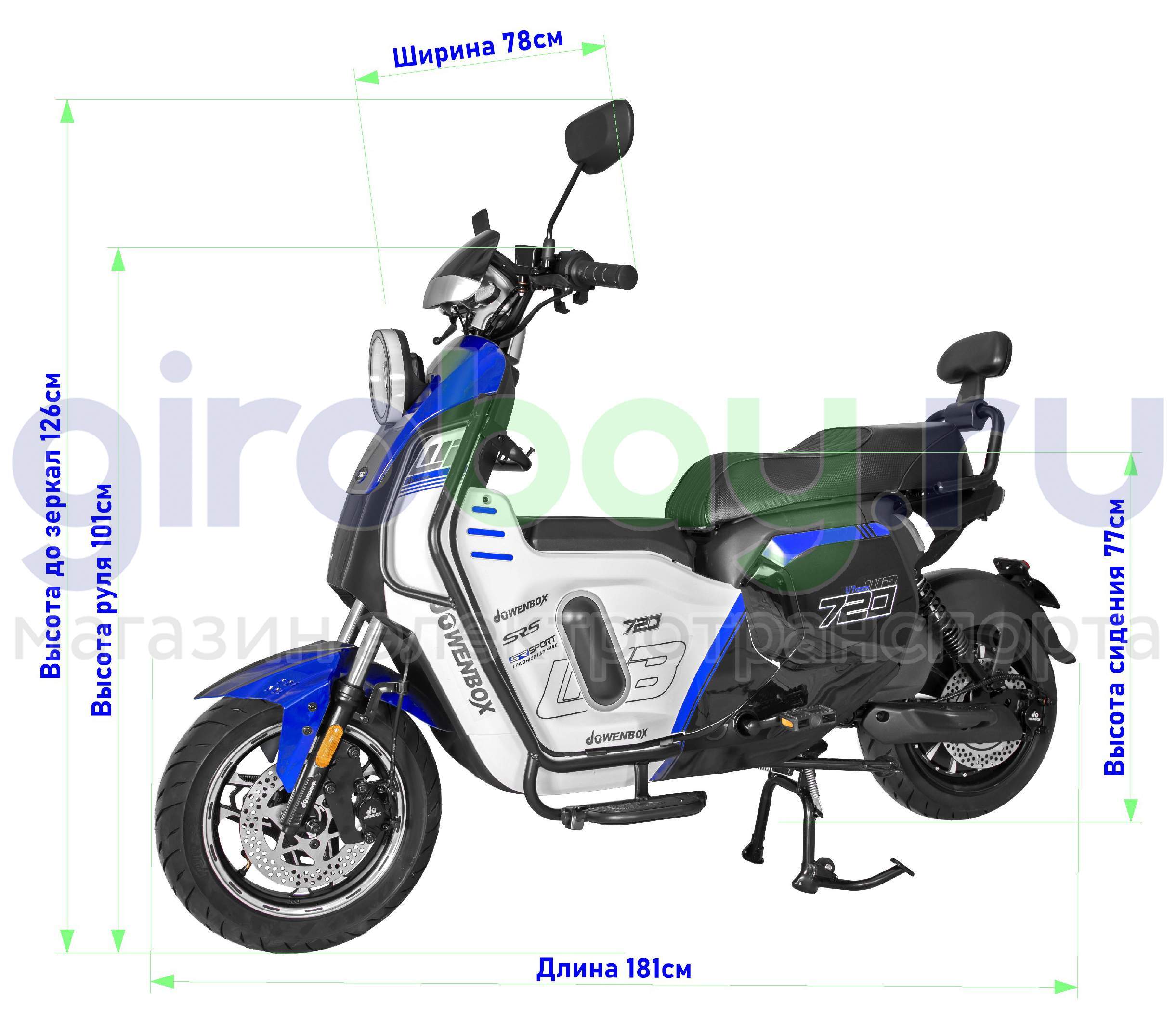 - ●Тест-драйв Электроскутер WENBOX U7 1500W (60V/30Ah) - Синий в шоу-руме Girobay